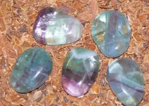 Der Fluorit, auch Flussspat genannt, gilt nicht nur als Heilstein, sondern aufgrund seiner vielfältigen Farbgebung auch als sehr beliebtes Sammlerstück. Bereits im Mittelalter wurde der leicht zu spaltende Stein als Flussmittel in der Glas- und Metallverarbeitung eingesetzt. Der Regenbogenfluorit (s. Abbildung) gilt vor allem in China seit Jahrhunderten als Glücksbringer, der Schutz vor Selbstmordgedanken und schwarzer Magie bringen soll.