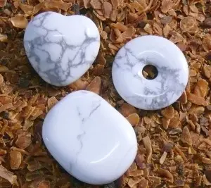 Der leicht zu verarbeitende Magnesit kann als Kette, Kettenanhänger, aber auch als Trommelstein oder Handschmeichler in der Tasche getragen werden.