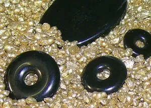 Die Onyx-Donuts wurden auf goldfarbigem Weihrauch (boswellja papyrfera) fotografiert. Weihrauch wurde schon im alten Ägypten für kultische Zwecke geräuchert. Es hat einen balsamisch-würzigen Duft und gilt als Mittler zwischen der geistigen und der materiellen Welt. Das körnige Harz vertreibt negative Energien und eignet sich hervorragend als Reinigungs,- und Schutzräucherung.