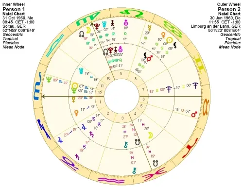 Das Horoskop des Partners verstärkt, schwächt ab, verschiebt Schwerpunkte unseres eigenen Horoskops.